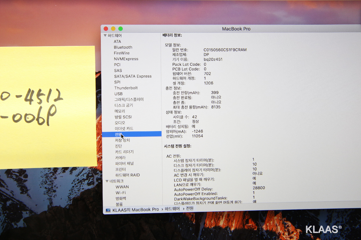 배터리 사이클: 42회 , 최대충전용량 8135