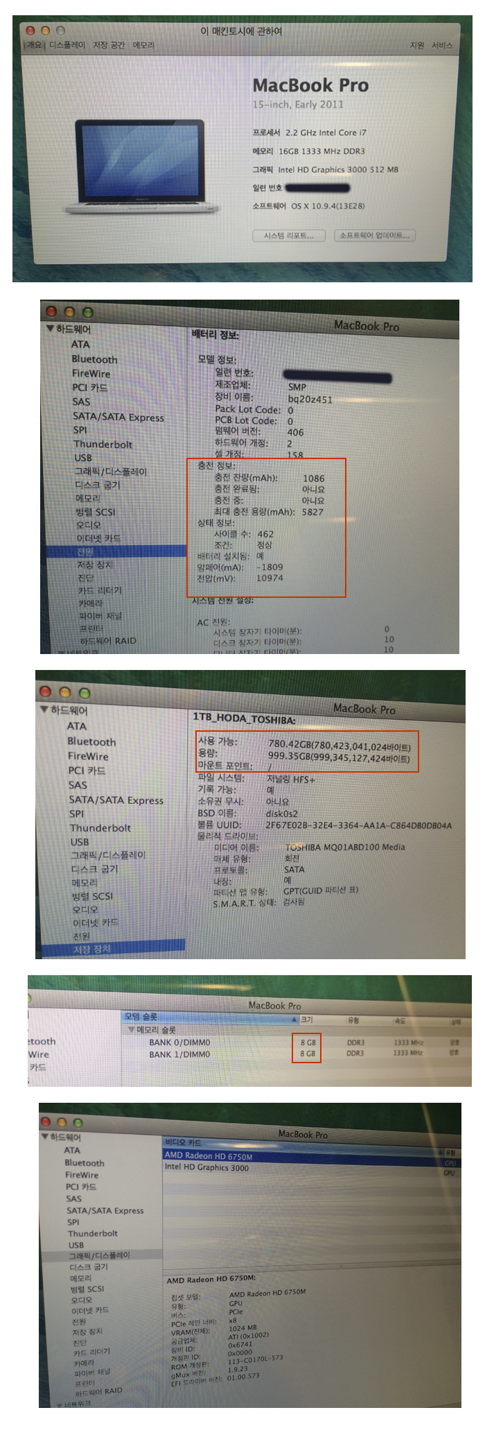 2011 early 맥북프로 15인치 CTO (메인보드케어 2달남음, 직거래내고가능)