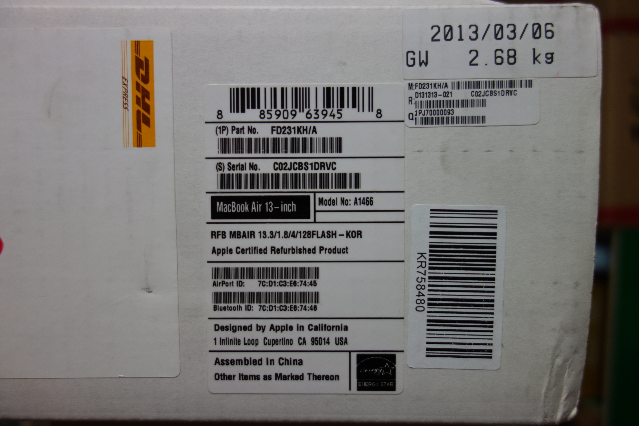 -생산일자 및 애플스토어 구매 인증샷입니다. DHL을 통해 받은 것을 알 수 있습니다.