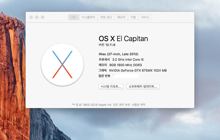 맥os 엘캐피탄 설치됨