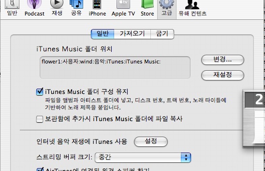아이튠 환결설정에서