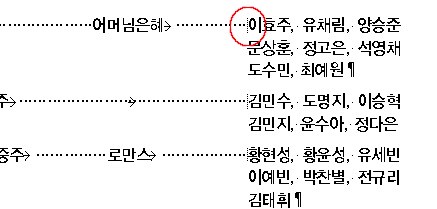 커서를 이효주앞에 높고 Command + 델키와리턴키 사이의 키를 누르면 커서위치를 기준으로 정열됩니다. 단 단락이 한줄로 이어져열 있어야 효력이 발생됩니다.