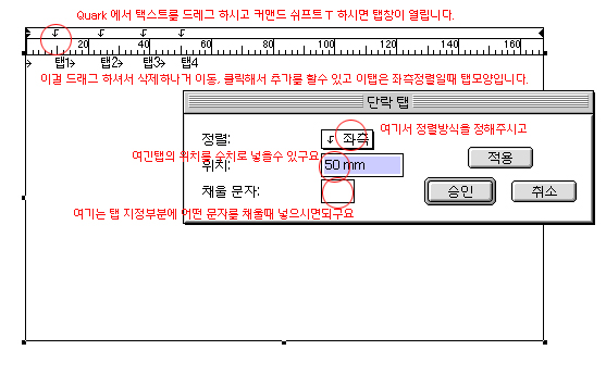 음 이외에도 탭은 스타일목록에서도 적용할수 있지때문에 많은 양의 택이나 일정한부문을 작업할때는 스타일목록에 포함시켜서 작업하셔도 편리하답니다.