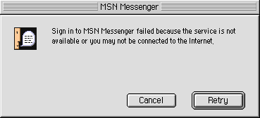 위의 문제가 아니라면 MSN Messenger가 종료된 상태에서 한글 시스템 --> Preferences 폴더에 있는 MSN Preferences 혹은 MSN 환경설정 등과 같은 파일을 찾아 삭제를 하신 후에 다시 MSN Messeger를 실행하시어 접속 여부를 확인해 보시기 바랍니다.